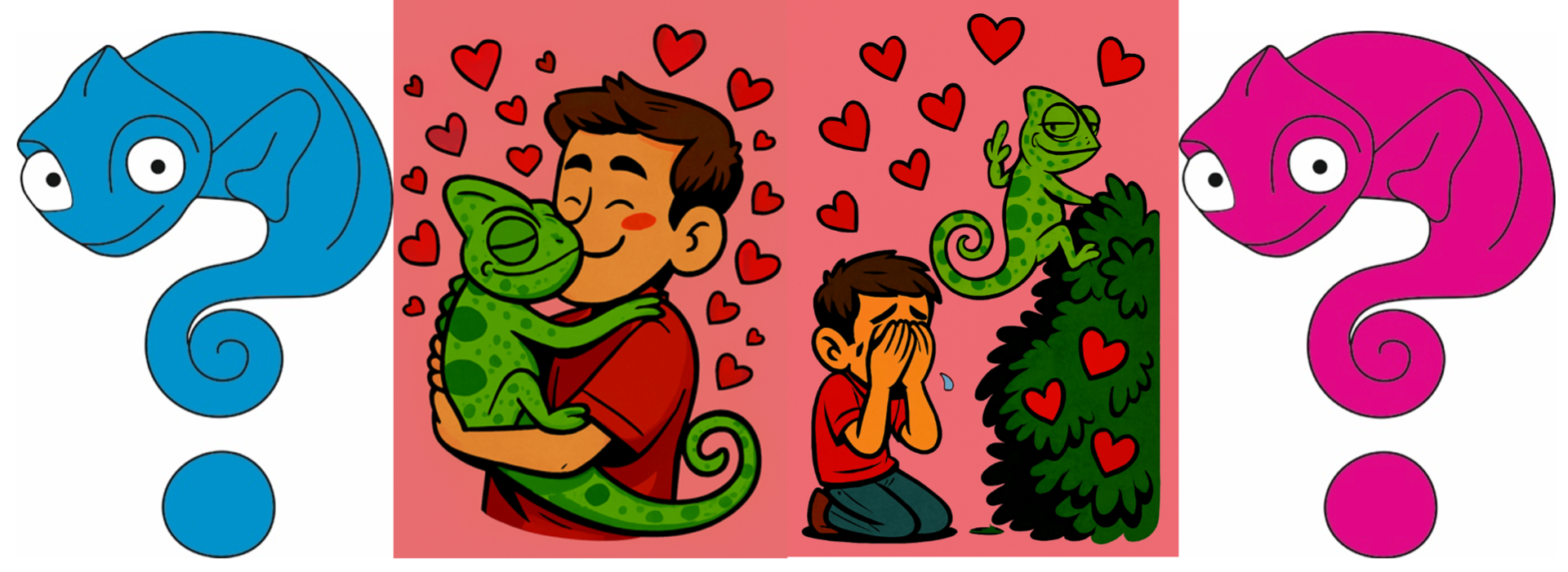 Reality: No—it doesn't. Chameleons are not social animals. They do not seek companionship, affection, or bonding, not with humans, merely with their own kind. And even this: over distance. What some keepers interpret as "wanting to socialize" is a misunderstanding rooted in anthropomorphism—the projection of human emotions and desires onto animals...