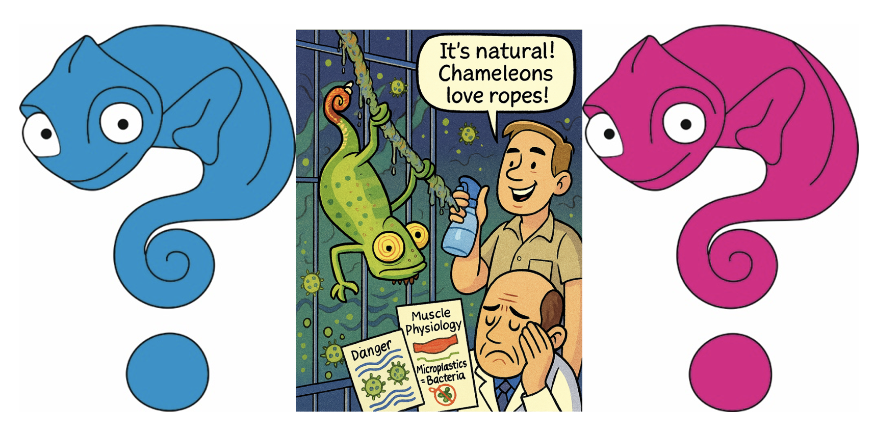 Many keepers decorate their chameleon enclosures with ropes, often inspired by setups for other reptiles like hammocks for bearded dragons. They claim ropes are "natural," that they "imitate vines in the wild." But this is a misinterpretationof both nature and chameleon biology.