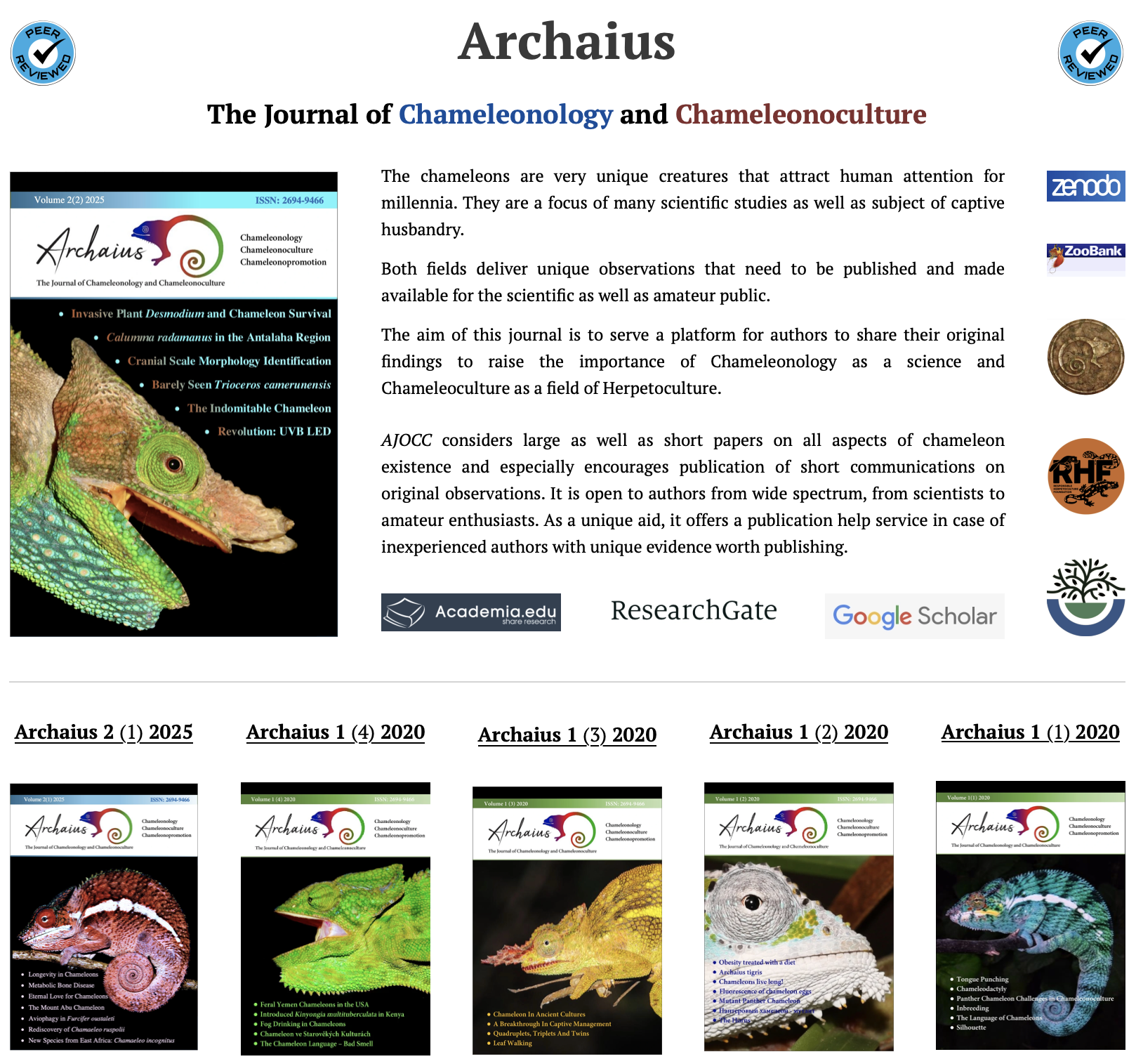 The aim of this journal is to serve a platform for authors to share their original findings to raise the importance of Chameleonology as a science and Chameleonoculture as a field of Herpetoculture.