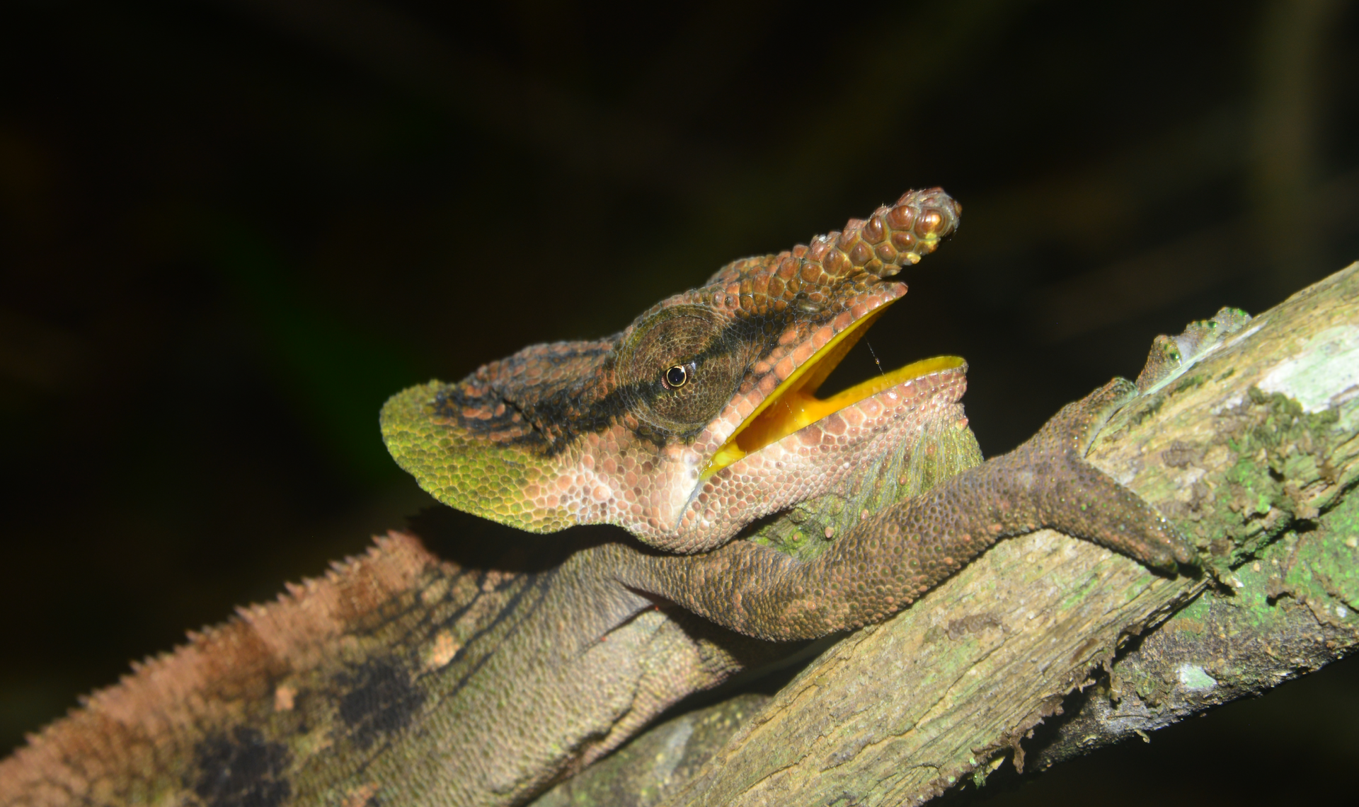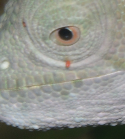 Calumma cristifer with a mite on its eye lid