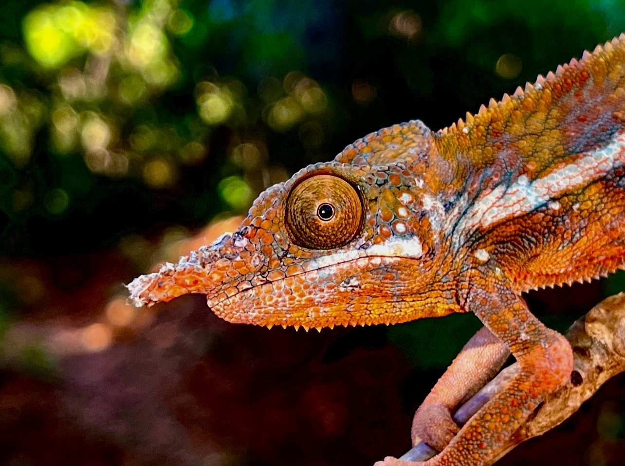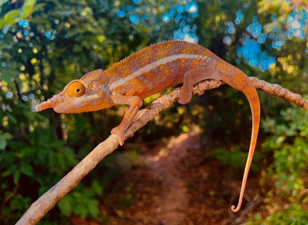 This chameleon is anything but drab. Males are vividly orange, their tones blending uncannily with the iron-rich red soils of western Madagascar. Yet despite this earthy camouflage, they are canopy dwellers, spending most of their lives high in the trees and rarely descending to the ground. Their presence is more often betrayed by a flash of color against the foliage than by footprints in the dust.