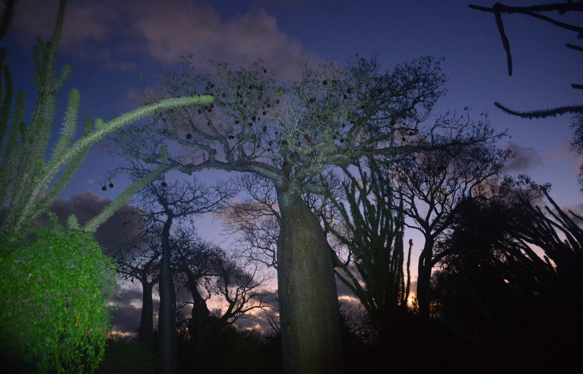 These two phases—cryptic at daytime, shining through the night—are typical of Furcifer antimena, a species confined to the dry spiny forest of southwestern Madagascar. Endangered and restricted to this fragile habitat, it remains one of the emblematic guardians of the thorny forest, a chameleon whose dual palette reflects both survival and spectacle.