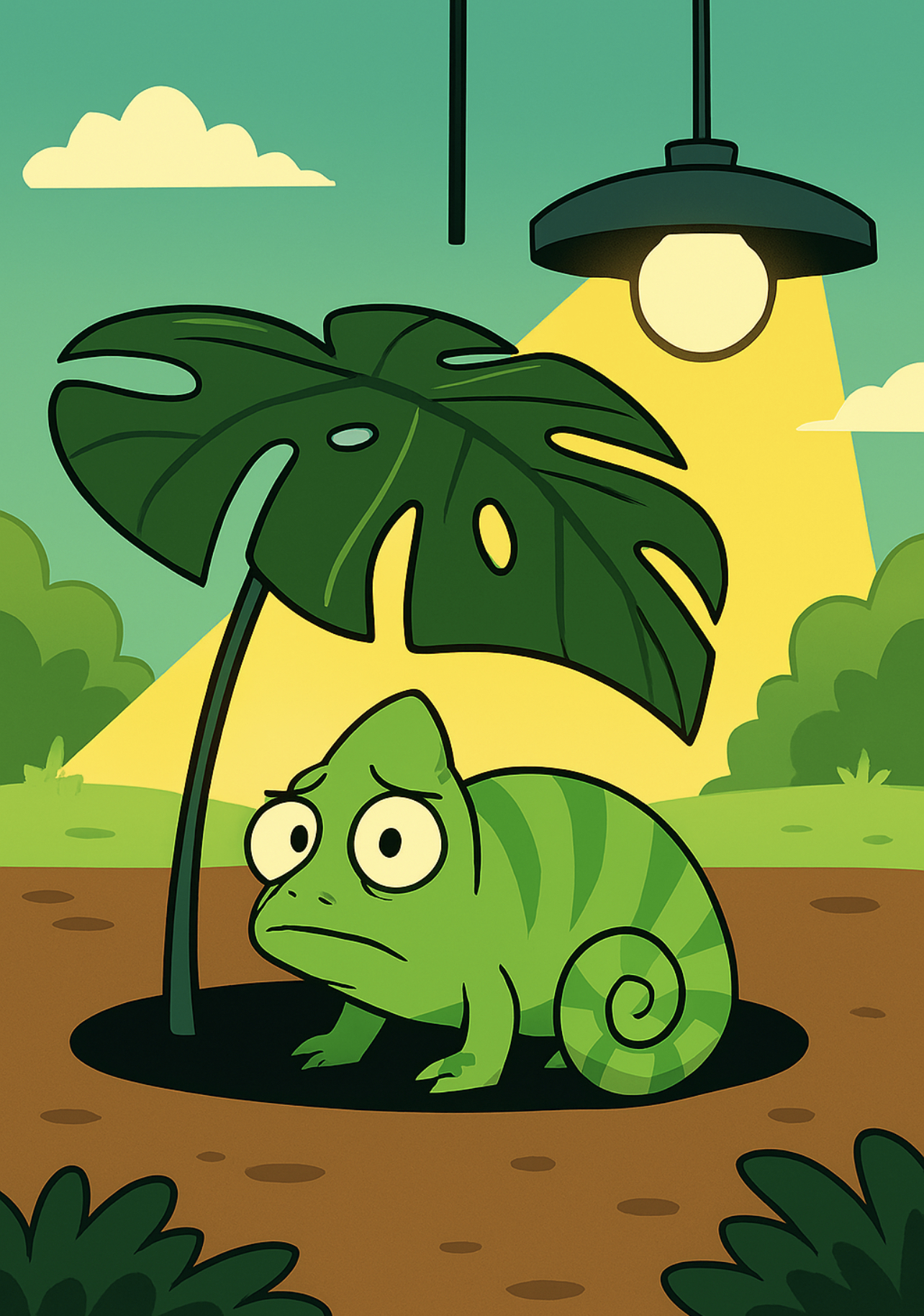 Big-leaf plants like Monstera sp. or Ficus elastica do provide shade—but too much shade. Their broad foliage can block essential UVB and heat, which are critical for your chameleon's health. Without proper lighting, your chameleon risks metabolic bone disease, poor digestion, and lethargy.