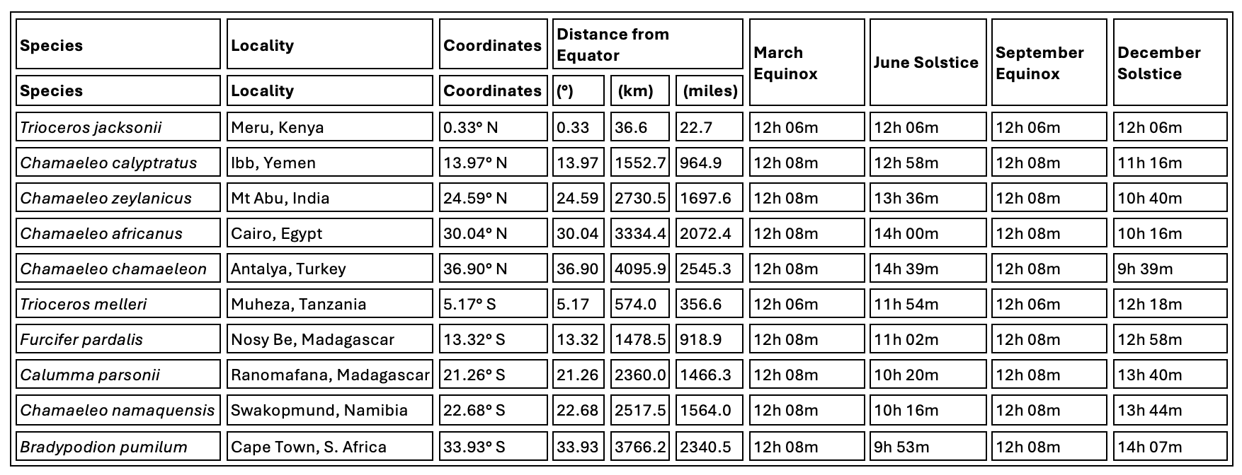 Chameleons evolved under specific environmental cycles. These cycles influence: