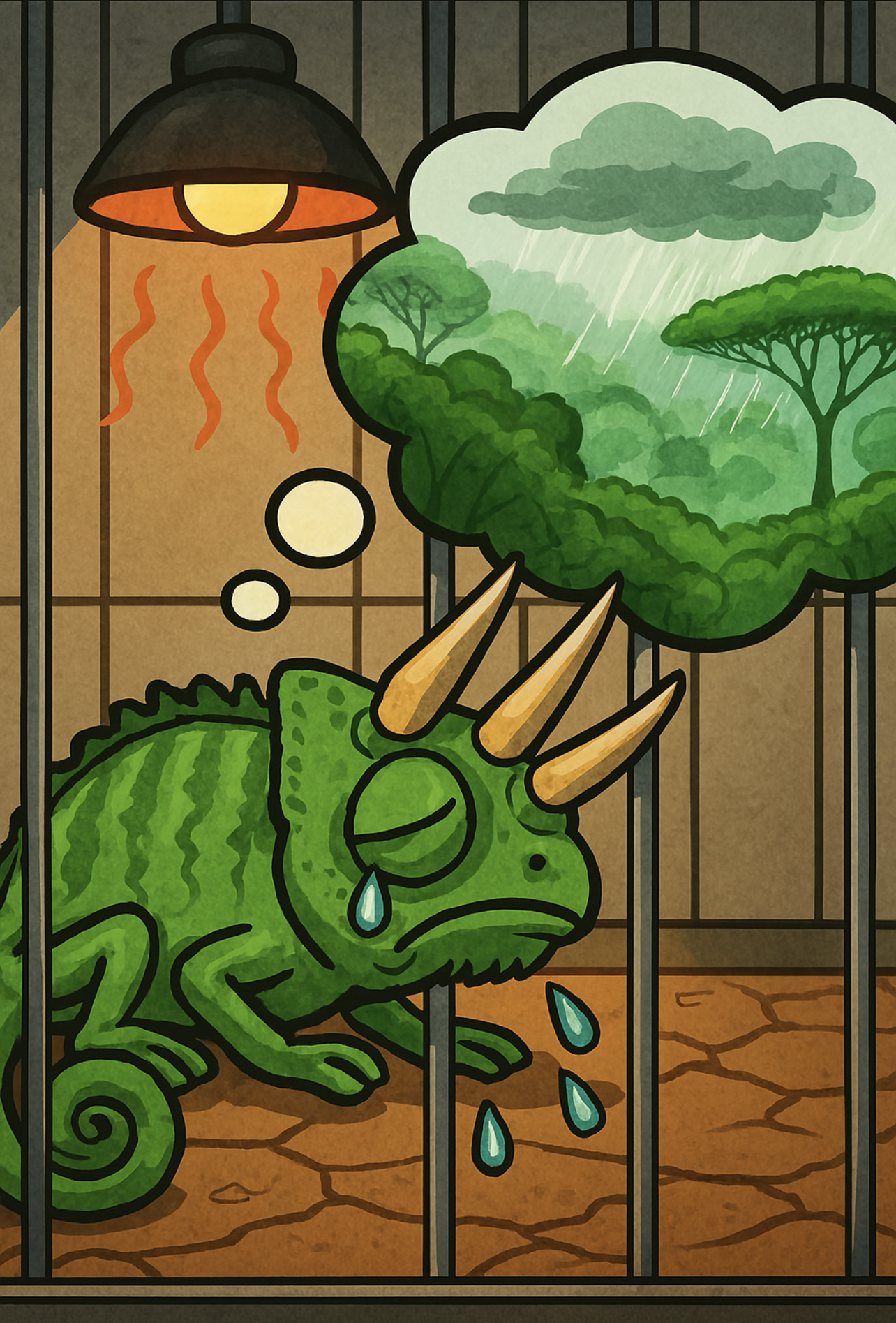 If these conditions are not met, Jackson's chameleons may appear active and "thriving"—but this is a false signal. Their resilience masks a slow, silent decline. They may survive for weeks or months, but each day under improper conditions brings them closer to irreversible damage.