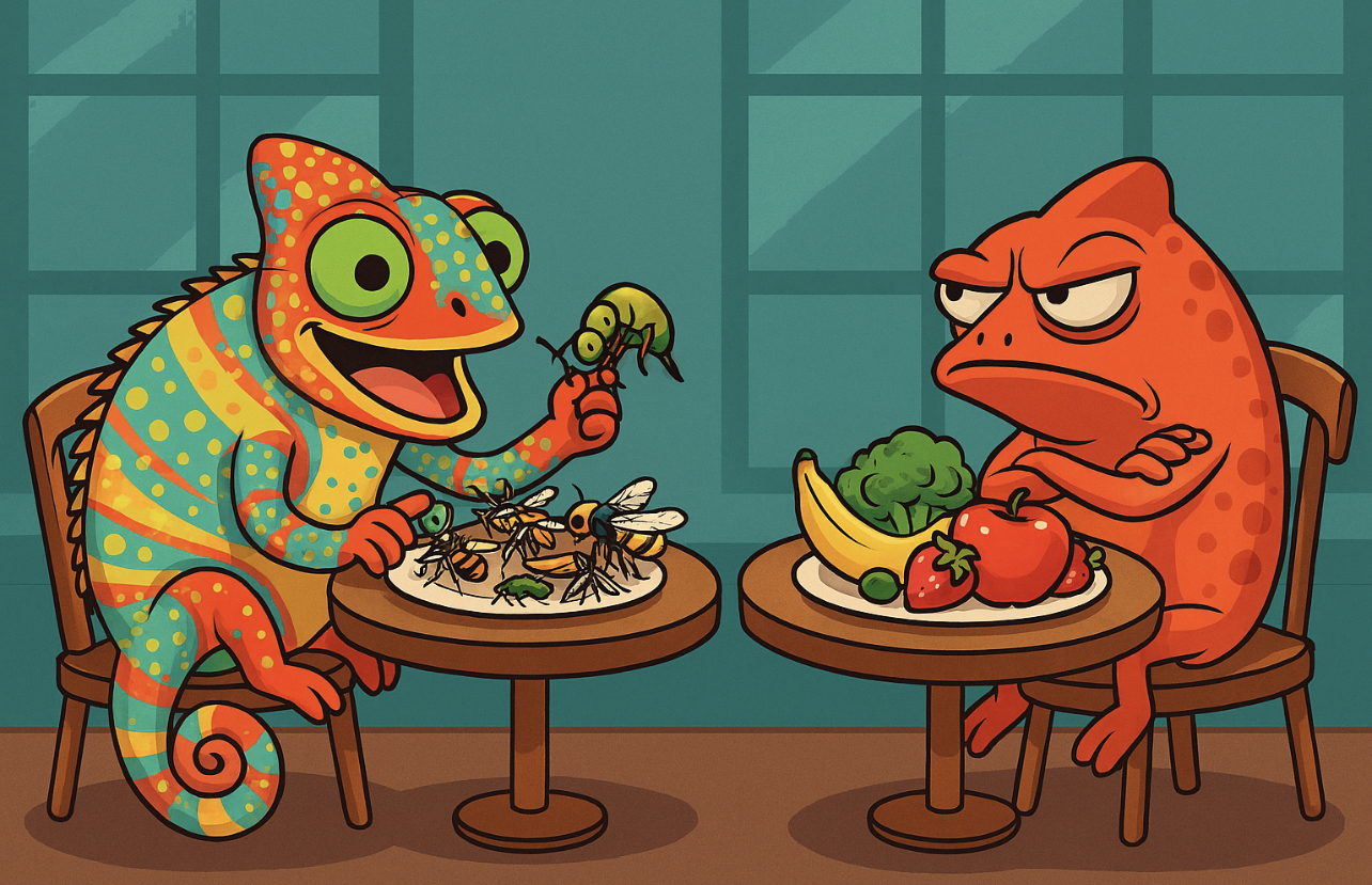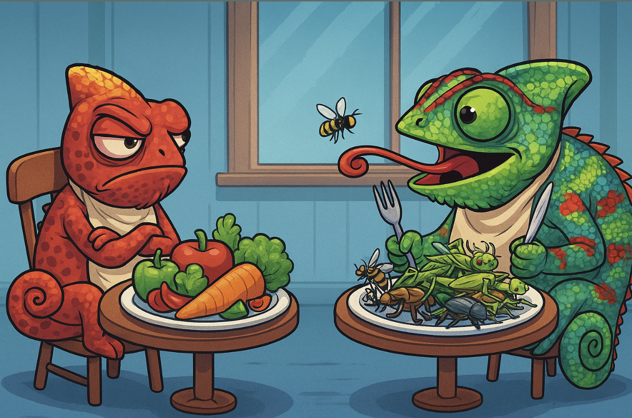 Feeding chameleons plant matter as a substitute for insects is not just wrong — it's dangerous. Their biology, evolution, and digestive systems are built for insect consumption. Misunderstanding this leads to suffering and preventable deaths.