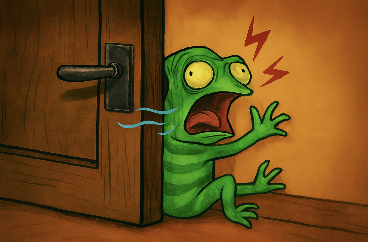 If there's an unexpected opening — a door left ajar, a window cracked, a vent uncovered — they will use it. Chameleons are astonishingly good at disappearing, and once they're gone, they're nearly impossible to find.