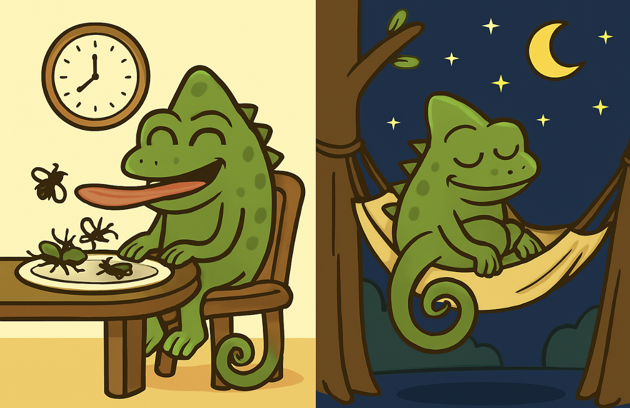 Feeding chameleons in the afternoon is perfectly safe and biologically appropriate. The myth that they "can't digest at night" is a fabrication with no scientific support. What matters is overall husbandry—temperature, hydration, and species-specific care—not the clock.