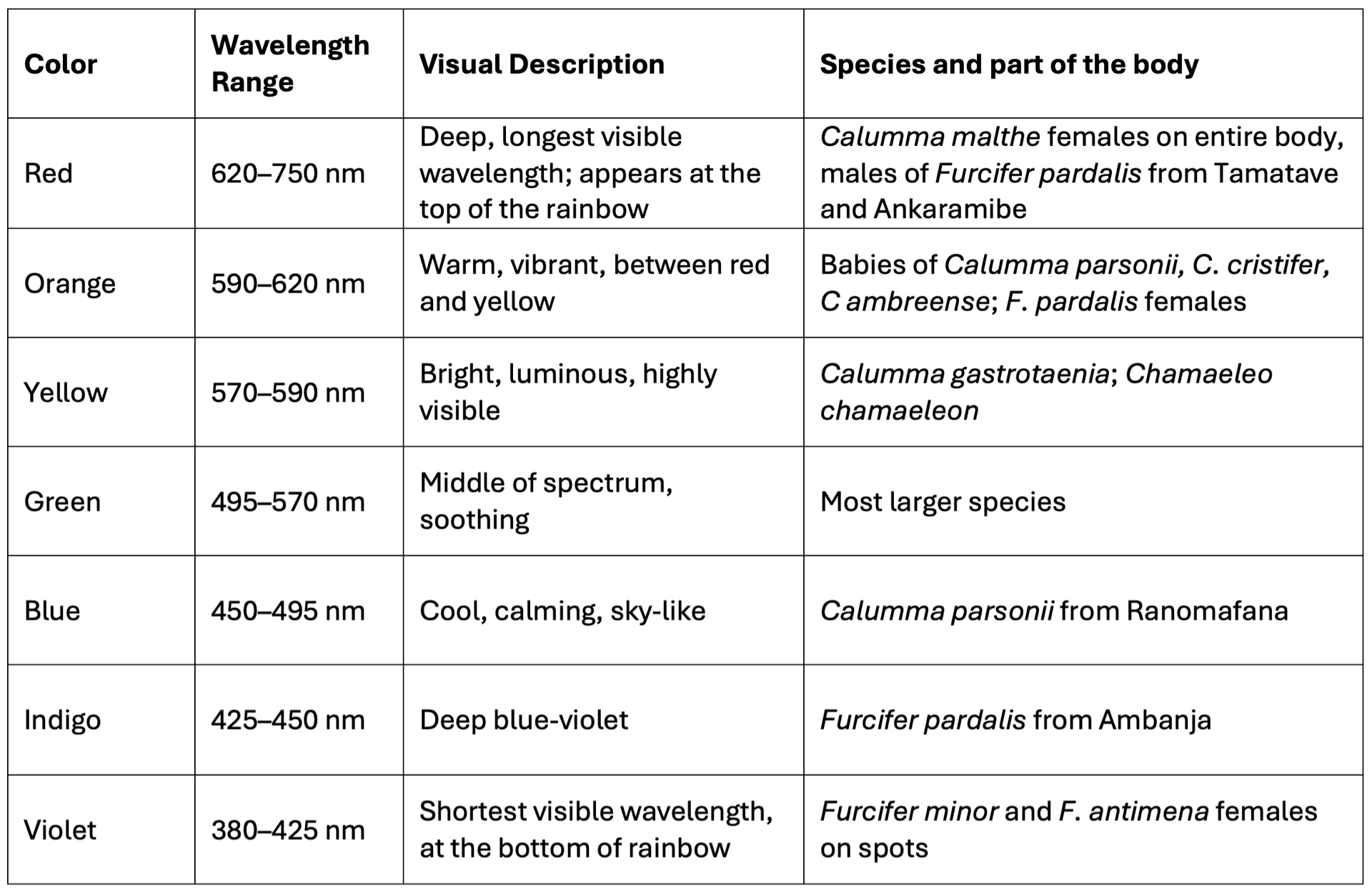 Some species (e.g., Furcifer pardalis) display a wide range of vivid hues, but even they are constrained—certain colors appear only in particular body regions.