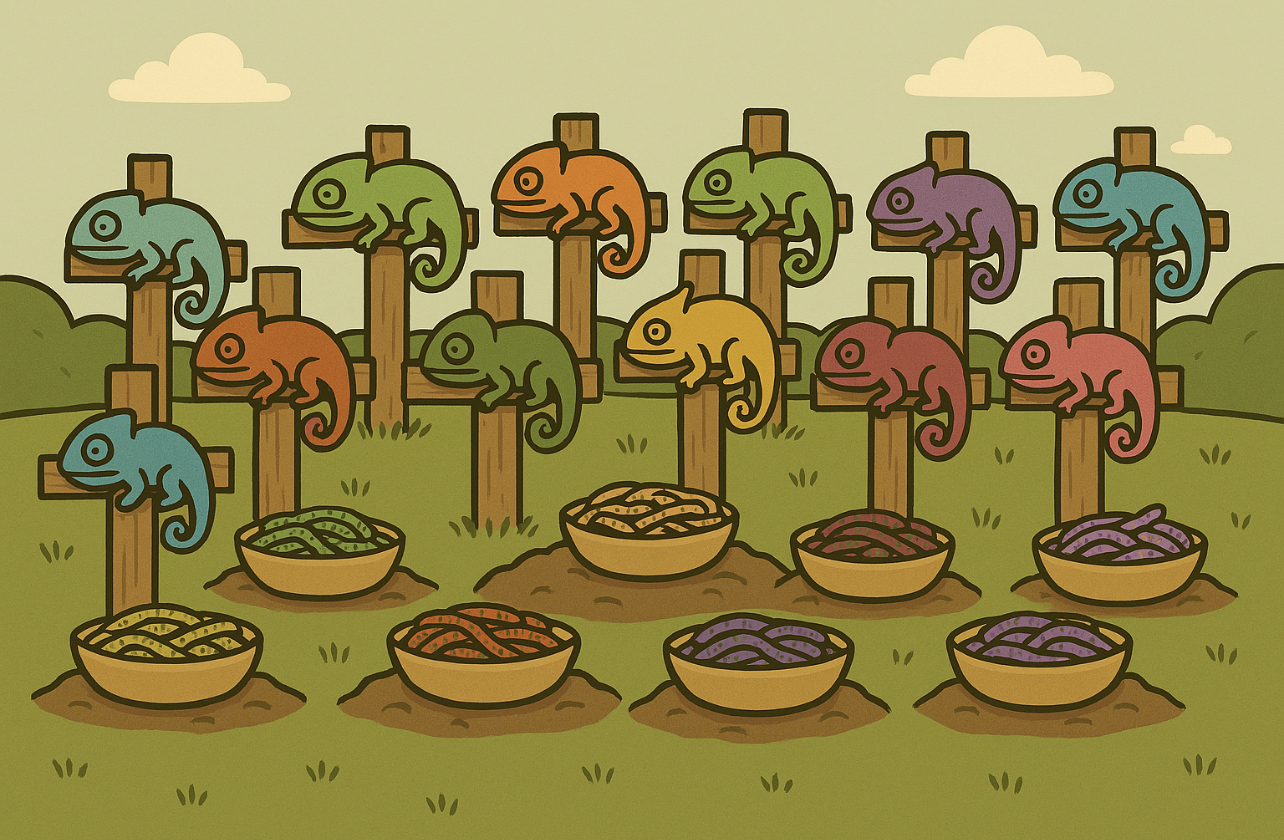 Chameleons are not miniature predators to be fattened like poultry. They are ascetic hunters, sculpted by scarcity, thriving on the aerial ballet of low‑value insects. To feed them a diet of worms and larvae is not kindness—it is malpractice.