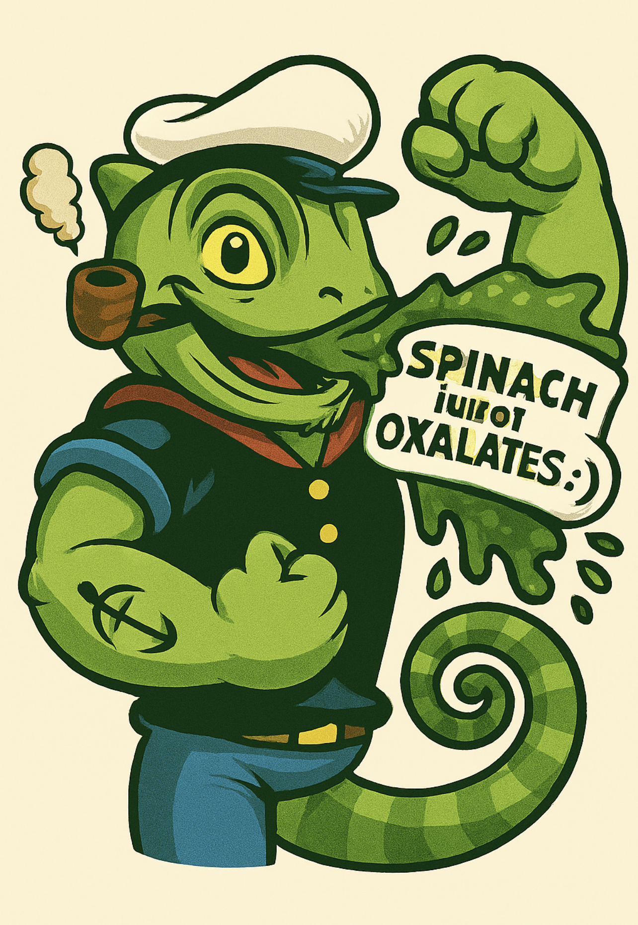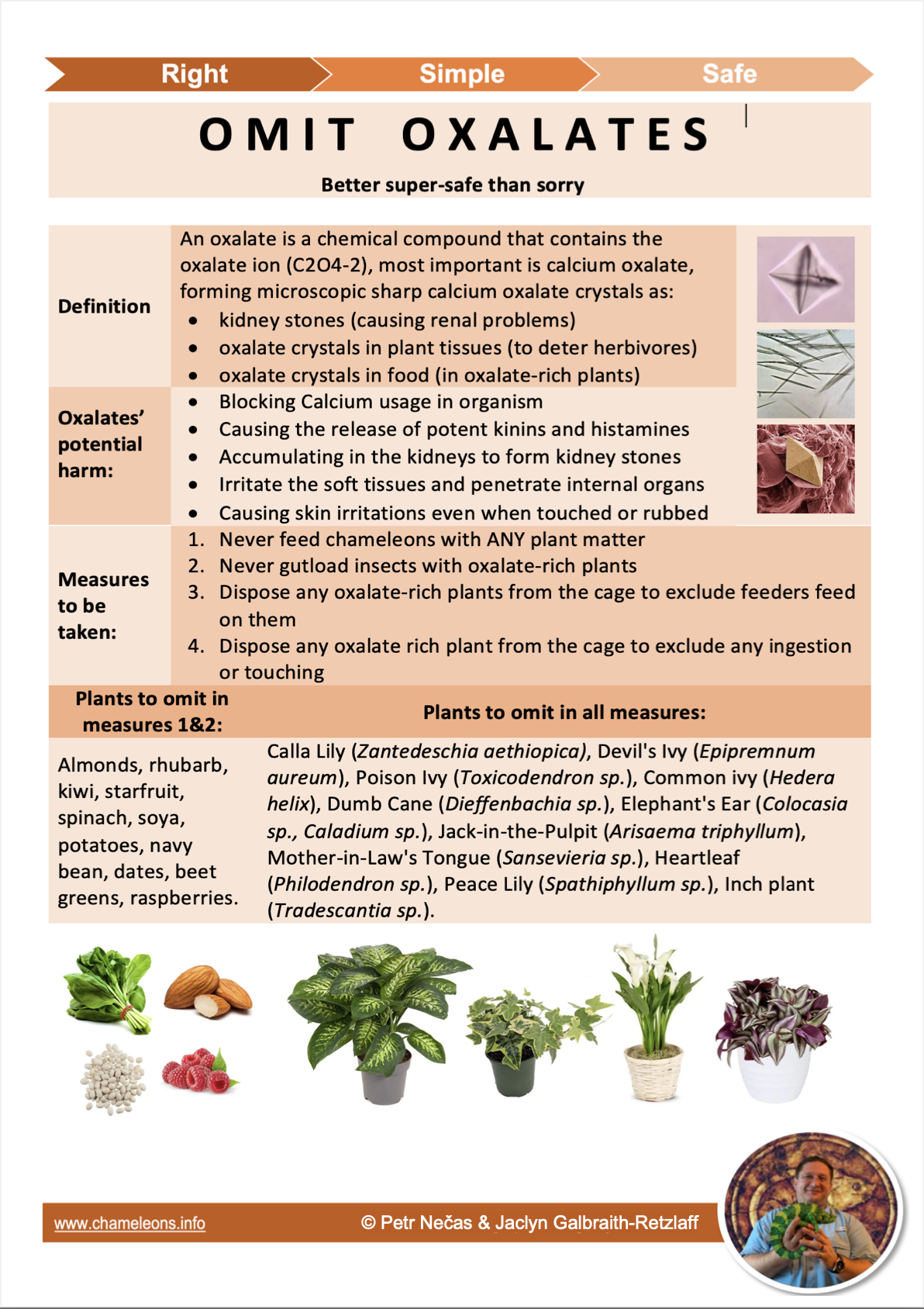 There's no hard evidence proving oxalates are harmless to chameleons — but there's also no clear evidence of harm. It is hard to give you evidence of absence of constraints. So, for cautious keepers, the best approach is still: better super-safe than sorry.